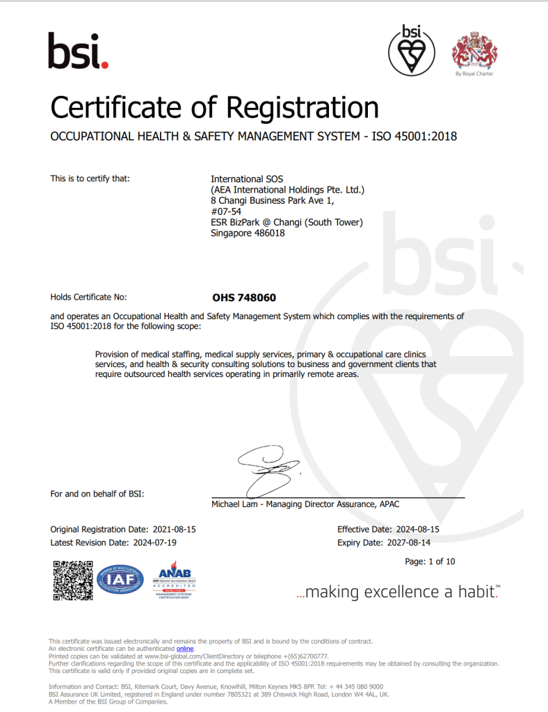 We have adopted the management and operational standards of International SOS, a global organization operating in over 90 countries. In our commitment to advancing healthcare in Mongolia, introducing new technologies, and aligning our services with international best practices, we were awarded ISO 9001:2008 and ISO 9001:2015 Quality Management System certifications in 2012. Additionally, our Occupational Health and Safety Management system has been accredited by the British Standards Institution with the ISO 45001:2018 standard.