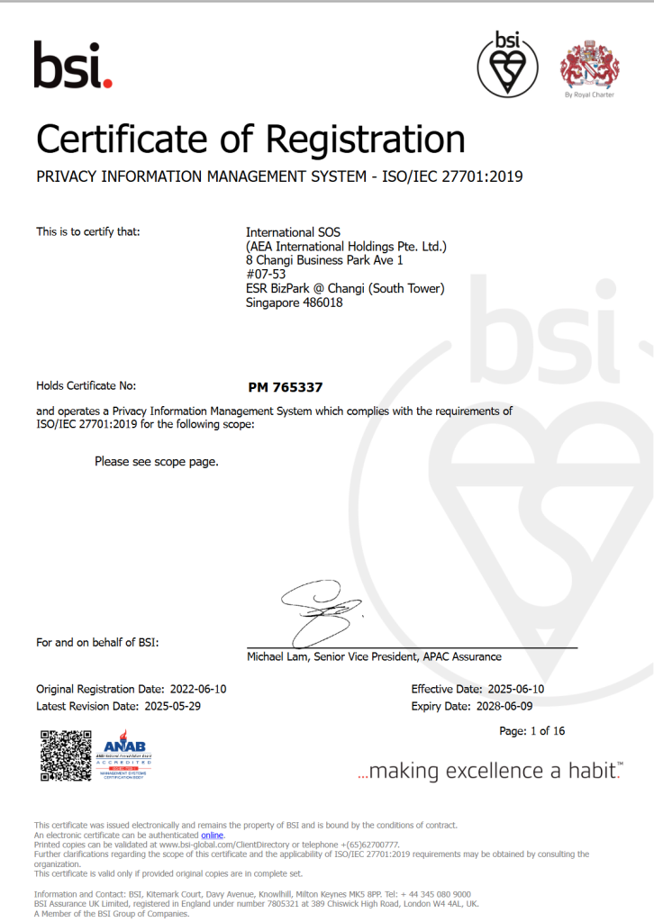 - ISO/IEC 27701:2019 – Privacy Information Management Systems (Certified by BSI)